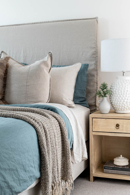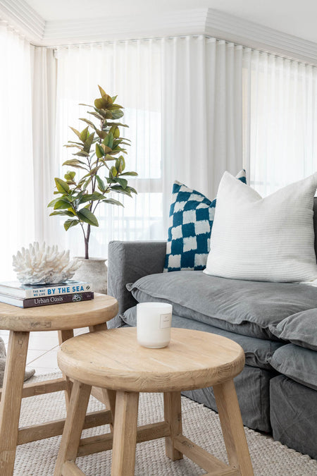 Our interior styling team at St. Barts was delighted to assist our interstate clients in transforming their cosy beachfront holiday apartment into a tranquil coastal haven. The goal was to encapsulate the essence of 'by the beach' living, providing a serene escape from the bustling city life of Melbourne. With the challenge of limited space, we carefully selected furniture of appropriate scale to optimize the apartment's proportions. Incorporating the clients' vibrant artwork into the design, we derived our colour palette from these pieces, infusing the space with character and charm. To maintain a harmonious balance, we softened the bold hues with light elm furniture and soft, muted tones for bed linens and cushions. By painting the apartment in Dulux natural white and adorning it with sheer curtains, we further enhanced the airy, beachy ambience. Our clients were thrilled with the end result, appreciating the comprehensive service our St. Barts styling team provided to create their dream beach retreat.