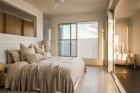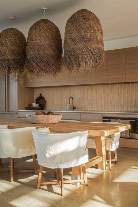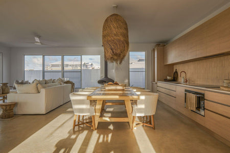 Our interior styling team at St. Barts had the pleasure of collaborating with the homeowner to bring the vision of Coastal Sunhaven to life. This newly built property in the Byron area is blessed with beautiful natural light, which we used as a foundation to create a bright and inviting space. To complement this, we incorporated neutral layered textures and rustic elm furniture throughout the home, instilling an earthy, relaxed feel that perfectly aligns with its coastal setting.