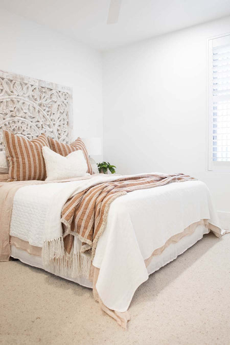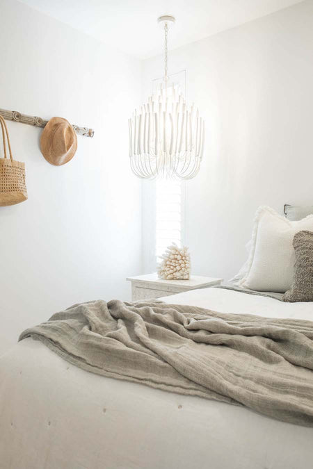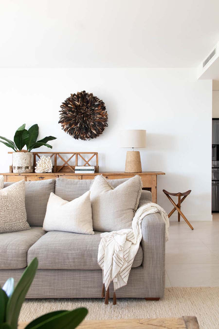 We have created a sense of coastal calm for our clients beachfront apartment and have ensured this flows throughout. This simple neutral palette was effective in evoking those holiday feels, layered up with different weathered coastal colours adding natural materials for plenty of texture and interest.