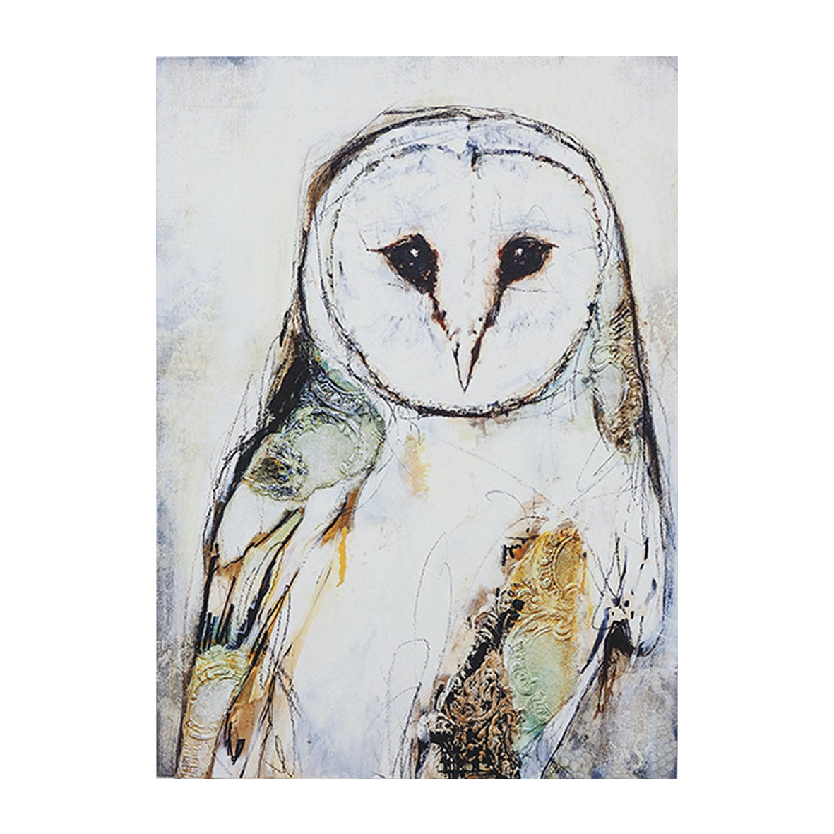 For many years I have collected antique wallpapers and fabrics. Antique Owl was a collaboration of ideas using the texture and patterning of the wallpaper, with mixed media paints and ink sketching.