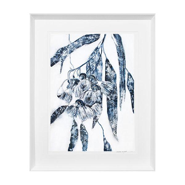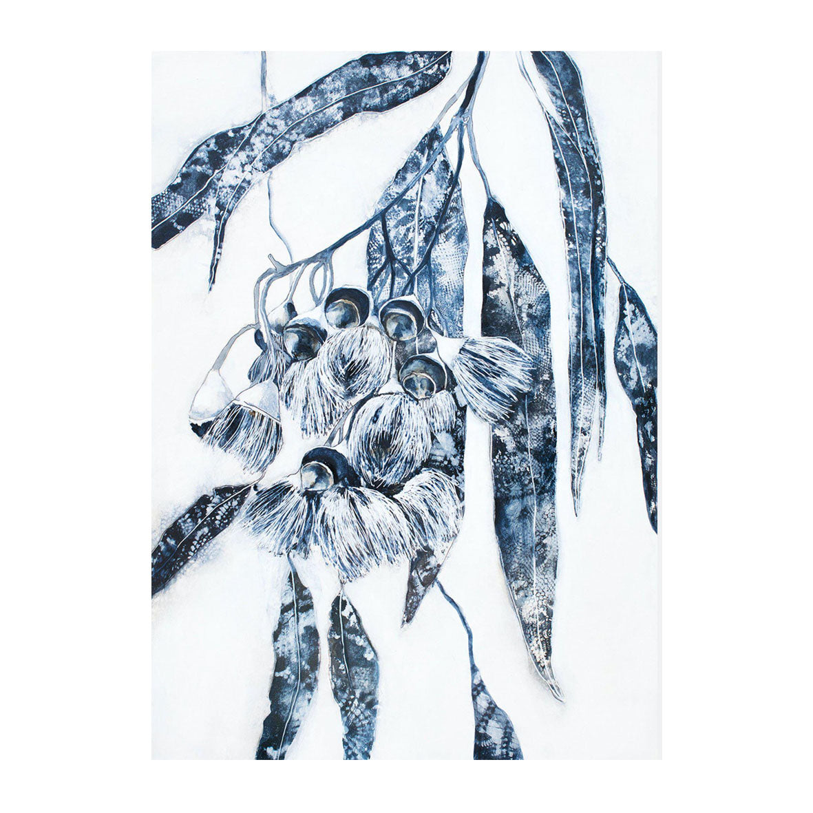 The intrigue into the contrasting depths of the colour indigo blue with the delicacy and beauty of our native fauna formed the idea for this ' Botanical Blu' series. Studying the secrets behind the colour indigo, it was discovered the dye came from a plant called Nila meaning 'dark blue' and was discovered over 5000 years ago. Using the strength of this colour then bleeding it out to its' soft watery edge, reveals it's strength and fragility.