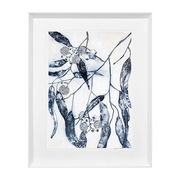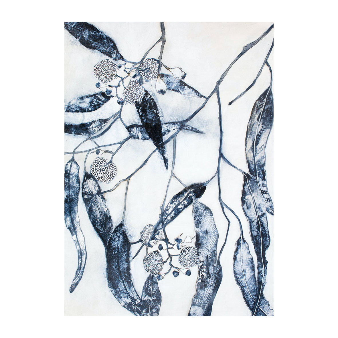 The intrigue into the contrasting depths of the colour indigo blue with the delicacy and beauty of our native fauna formed the idea for this ' Botanical Blu' series. Studying the secrets behind the colour indigo, it was discovered the dye came from a plant called Nila meaning 'dark blue' and was discovered over 5000 years ago. Using the strength of this colour then bleeding it out to its' soft watery edge, reveals it's strength and fragility.