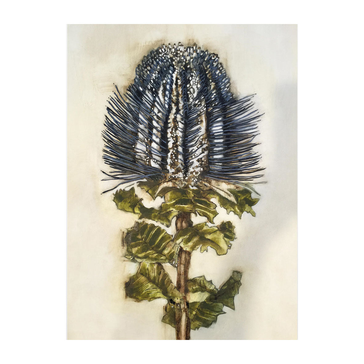 These beautiful flowers are an artwork of their own accord with all their amazing texture and intricate lines. I wanted to play with the idea of adding inky indigo blue colour tones with earth browns and greens for a different perspective.