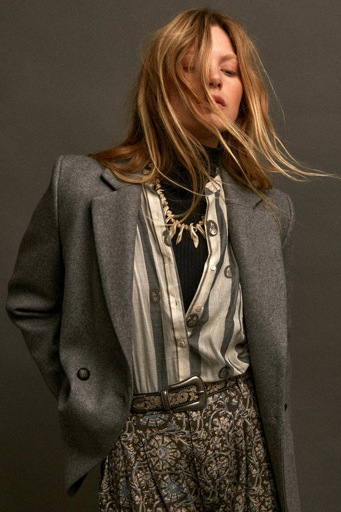 Styled tucked into Eden pant and cinched with the Rodolfo belt. It can also be worn open at the collar with tailored trousers for a refined, relaxed look.