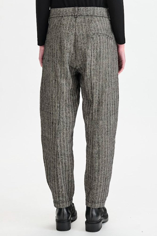 Cut in a gently rounded silhouette, this relaxed-fit trouser drapes with an understated ease—skimming the body rather than clinging to it. The herringbone weave lends a subtle depth to the soft chalk tone, creating a fabric that feels as considered as it looks. A refined blend of cotton, linen and wool offers breathability with a touch of structure, while a hint of elastane ensures comfort moves with you.