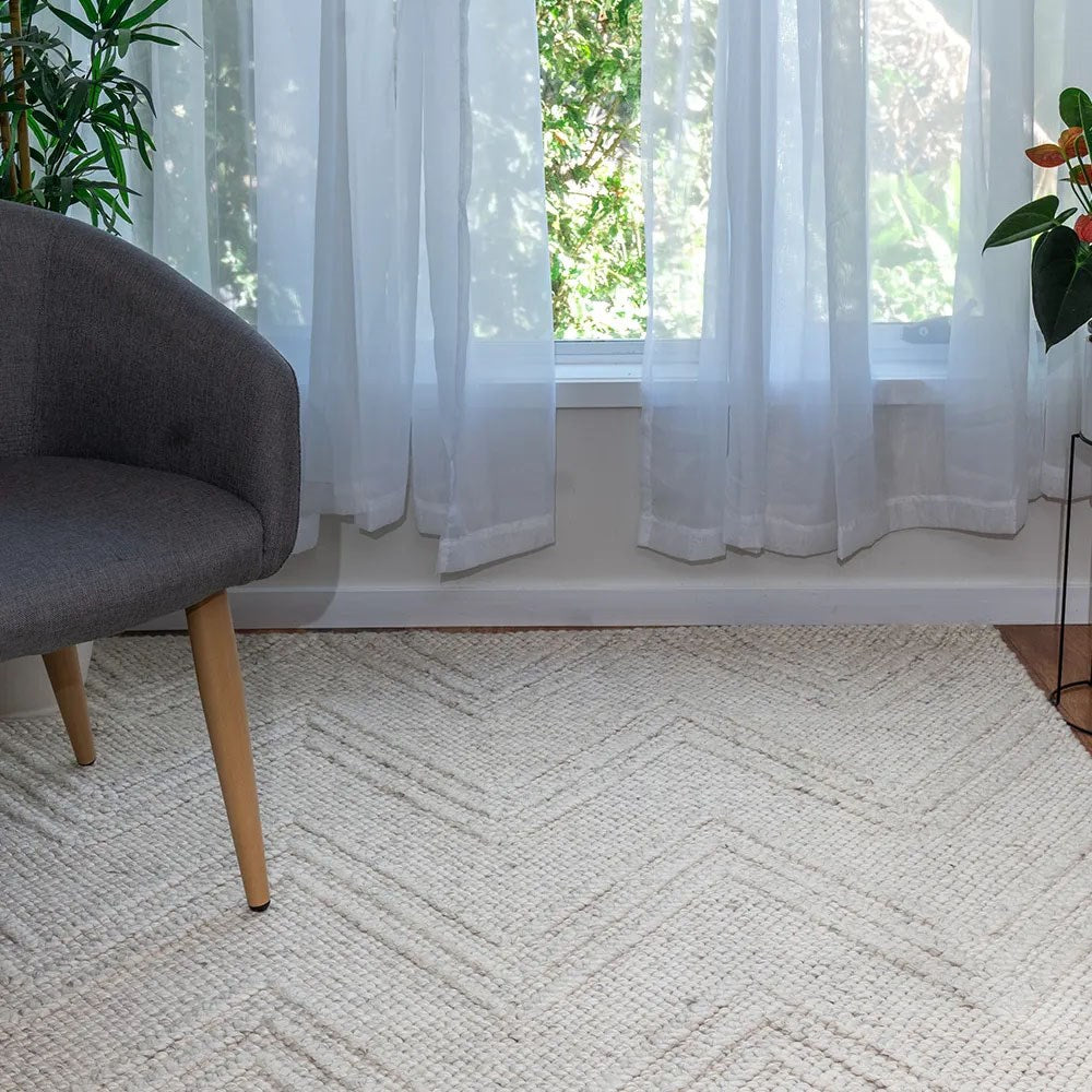A subtle marled chevron pattern that adds texture and interest to your room while visually separating your spaces. The Volvo rugs are hand woven in India, featuring textural woven patterns in hand spun un-dyed New Zealand wool and art silk yarns, blended for a calmer, more serene and relaxing style. The raised structure of the defining chevron motif enhances the natural weave of the Chevron style, while the natural tones of this collection will add warmth, comfort and texture to make the room feel more intimate.